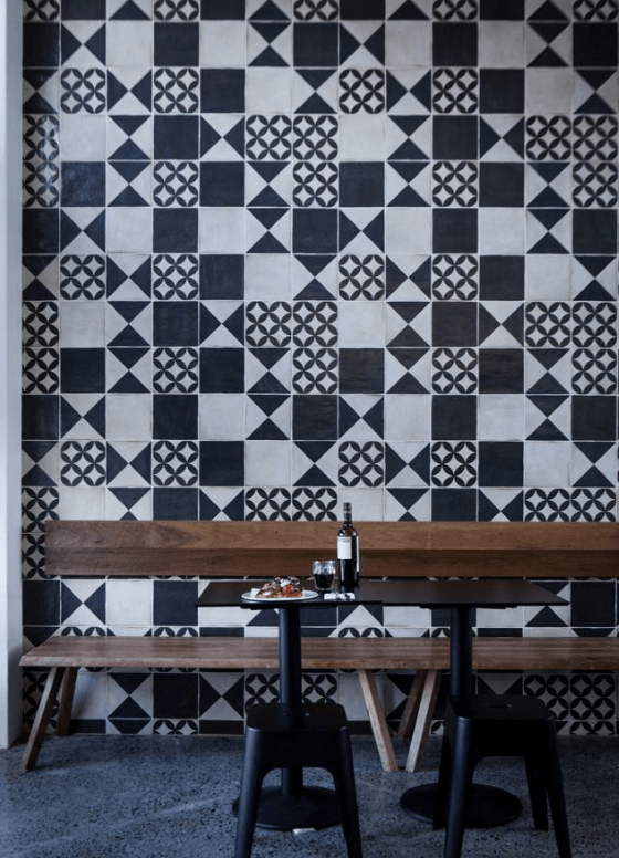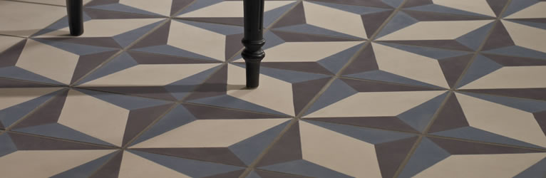 Flecha tile – “The ‘Flecha’ bespoke pattern is a graphic tile that will create an impact. Use this cement tile pattern in conjunction with a plain white tile to increase the feeling of space on a wall and also of course as a stunning floor tile.”