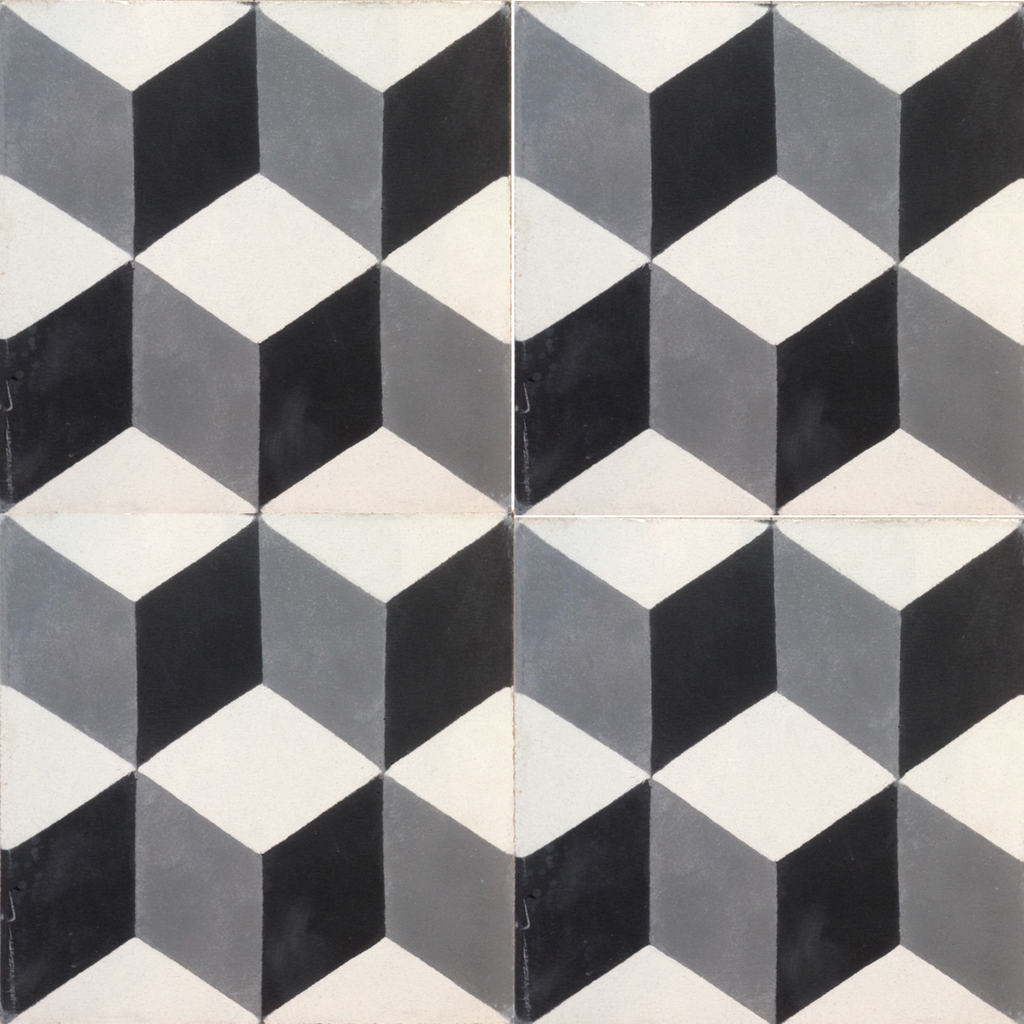 Geometric Black Encaustic Tile – “by Juxtaposing dark and light shades of the same colour, this tile creates the 3D effect of a cube”